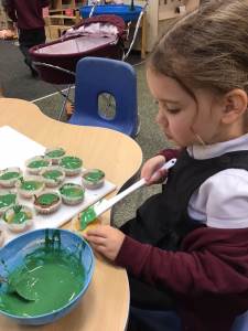 After carpet time, children have time to discover and learn through play. The activities and provision put out helps to guide the children’s knowledge but also give them the chance to create their own games and develop their skills. During this time, children are able to interact freely with their friends, both in the classroom and outside. They will also take part in group activities or individual tasks led by staff. Towards the end of the session, we stop for tidy-up time and then settle on the carpet with a small carpet session and a story before getting ready for lunch. This routine is then repeated in the afternoon with different activities.